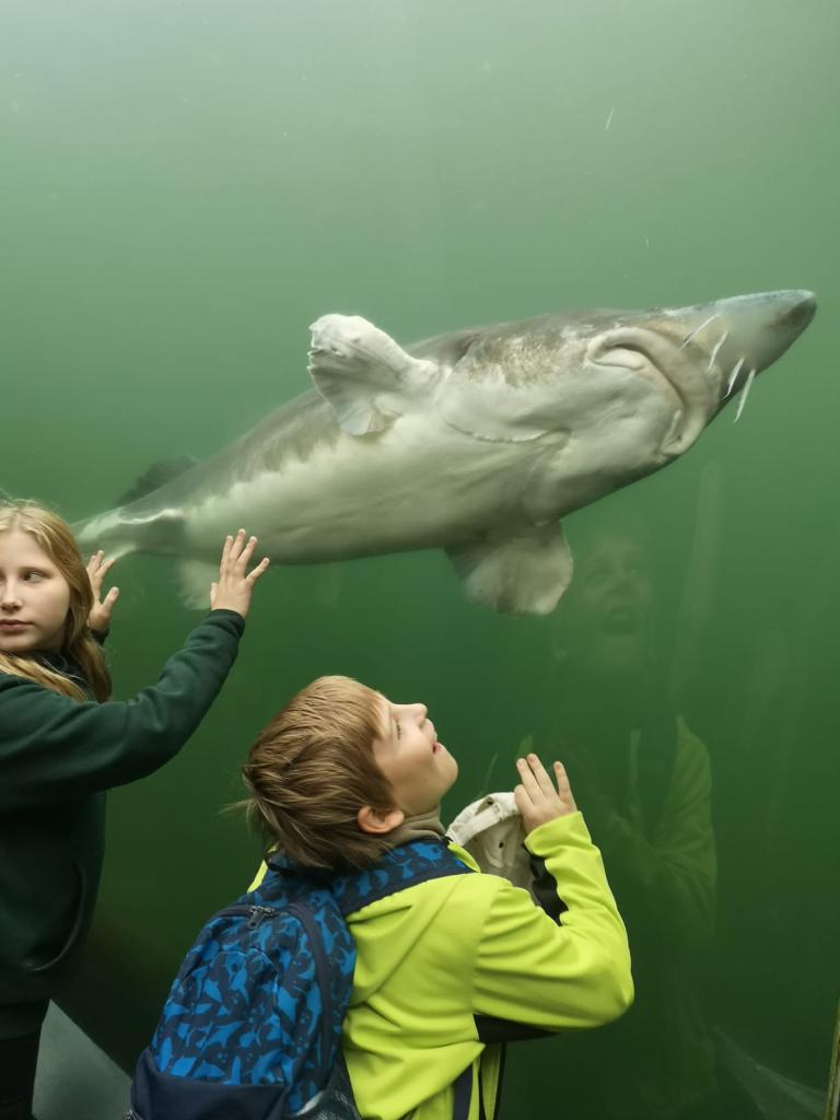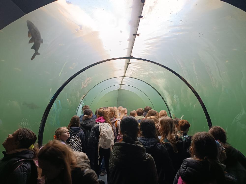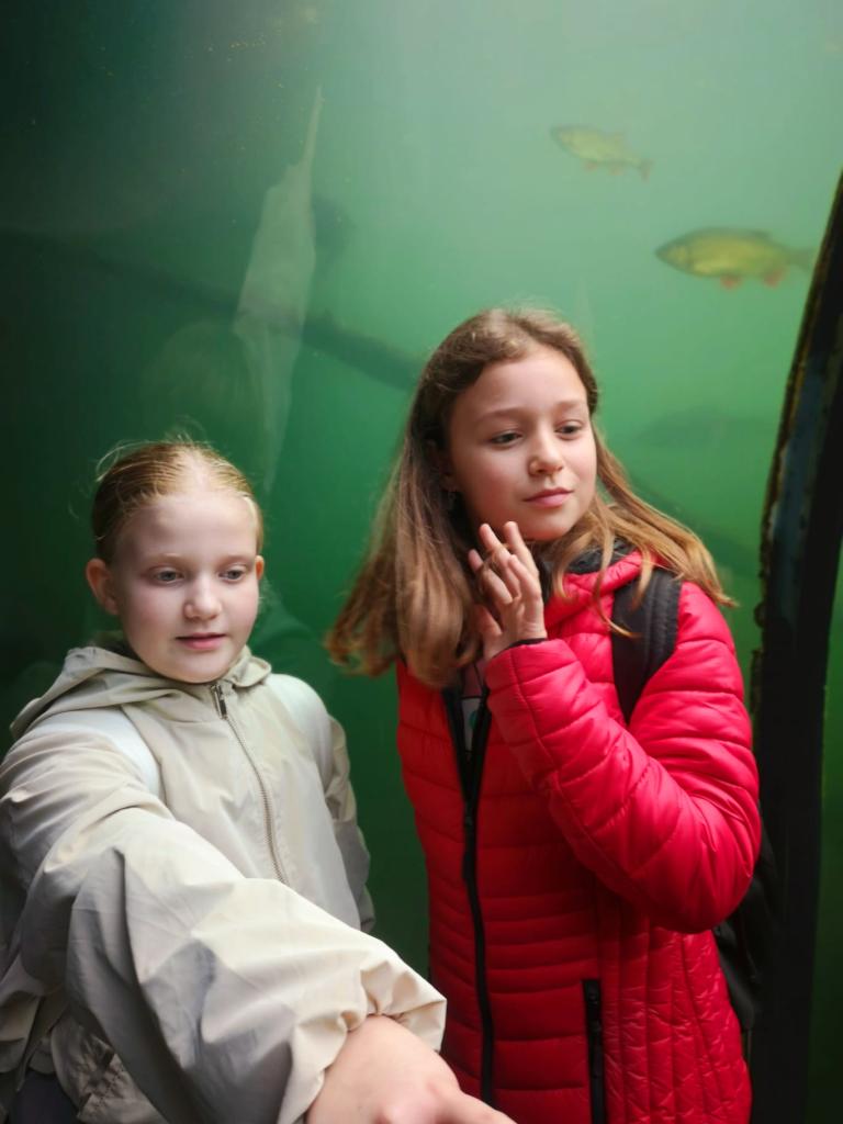 Pod hladinu vodní nádrže nahlédli skleněným tunelem v expozici Živá voda, kde dětem nad hlavou proplouvali nejen sumci, jeseteři a štiky, ale také největší sladkovodní ryba světa vyza velká. Závěr výletu patřil procházce za místními pratury.