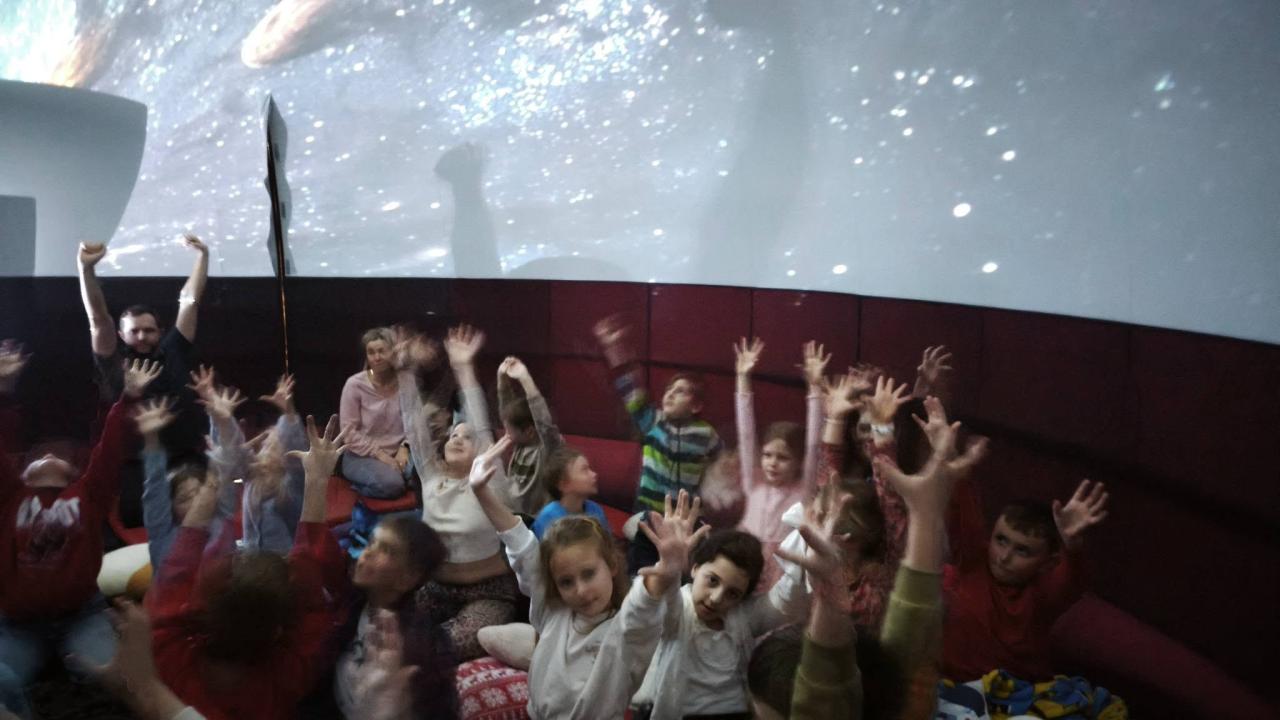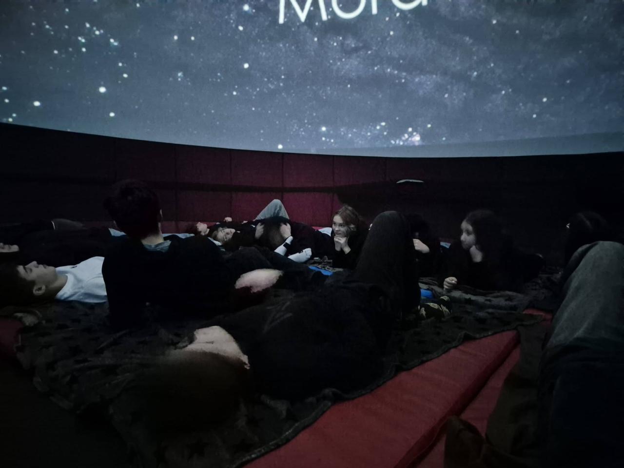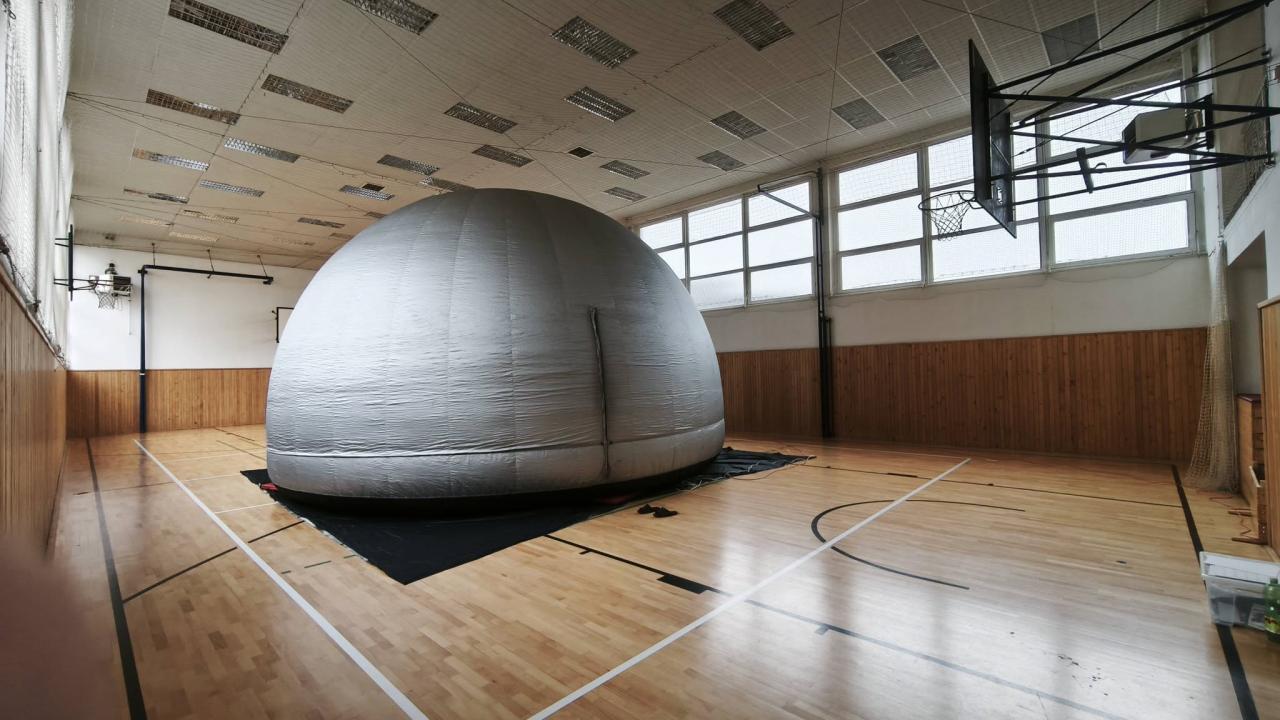 Ve velké nafukovací kupoli žáci s úžasem sledovali pohádkové příběhy mezi hvězdami, pozorovali život astronautů a poznali funkci satelitů ve vesmíru.