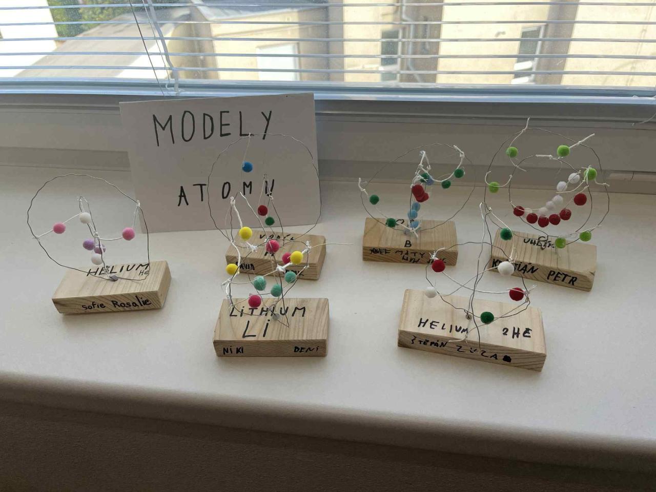 Každá kulička představovala částice atomu – protony, neutrony a elektrony – a drátky nám pomohly znázornit jejich uspořádání.