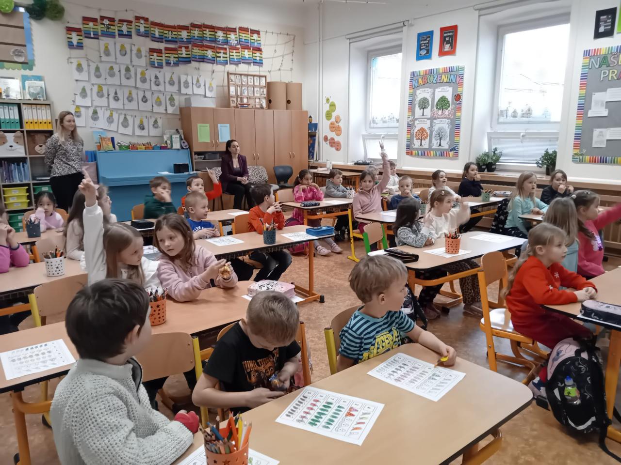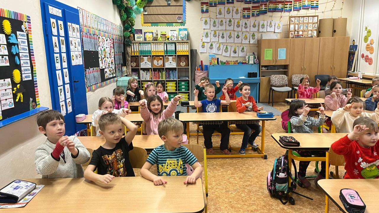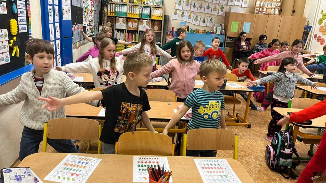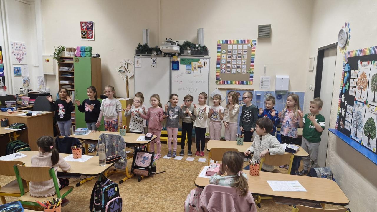 Na jednu vyučovací hodinu se stali školáky a společně s prvňáčky plnili úkoly, hráli hry, zpívali aj. Prvňáčci se své role staršího a zkušenějšího kamaráda ujali velmi zodpovědně, tak věříme, že malé předškoláky namotivovali a budou se k nám do školy těšit.