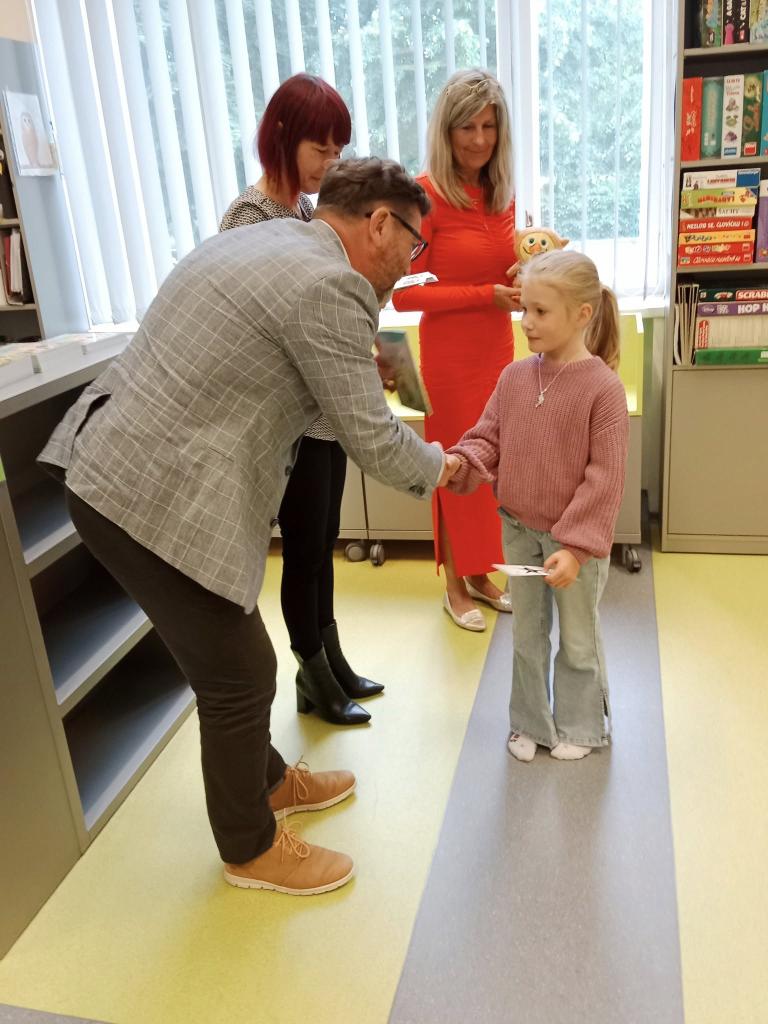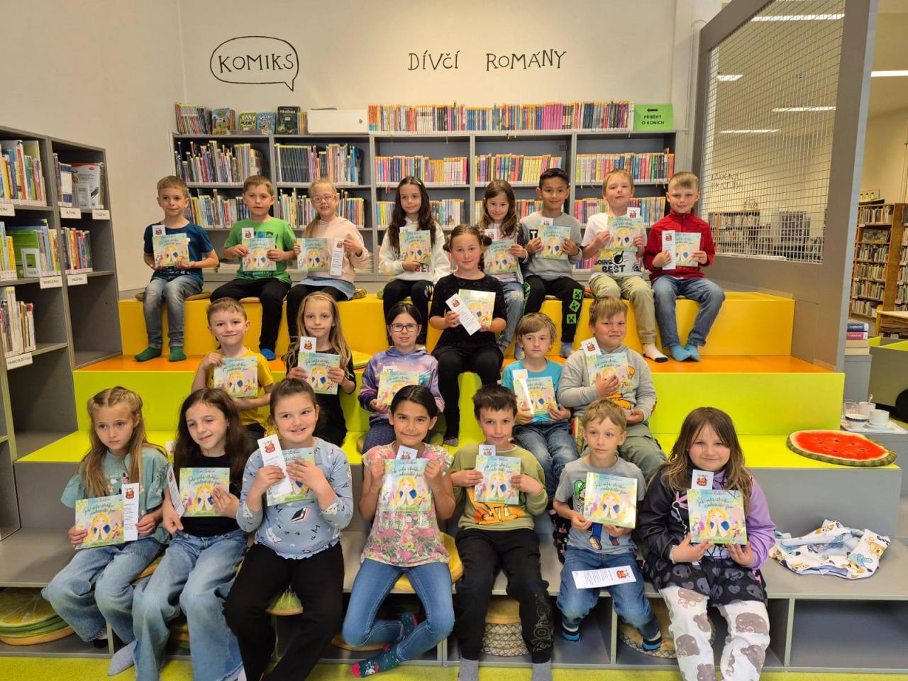 Celý rok se žáci z 1.A a 1.B pilně učili poznávat písmena,skládat z nich slabiky,slova a číst věty.Zaslouží si velkou pochvalu za celoroční snažení.Za odměnu byli dnes v Městské knihovně pasováni na čtenáře a dostali na památku pěknou knížku????.